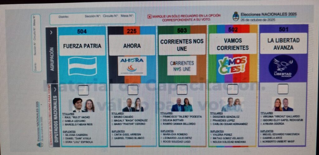 La Boleta Única de Papel de Corrientes para las elecciones 2025
